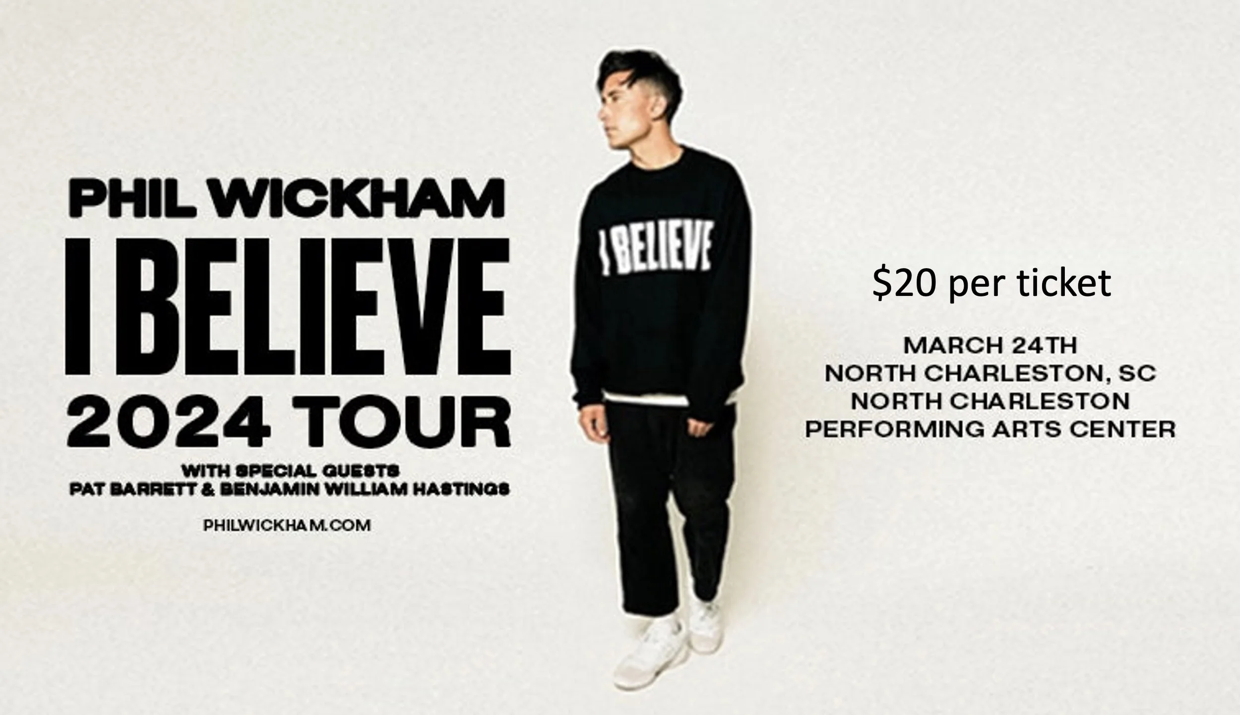 Join us for a night of worship with Phil Wickham. First Students is heading to the North Charleston PAC on Sunday, March 24th. Tickets are limited. To secure yours, turn in $20 to Pastor Colby or the church office.